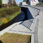Gerður var göngustígur niðri við vatnsborð meðfram læknum allt frá Hörðuvöllum. Við Skólabraut var stígurinn á hluta á brú þannig að vatnslistaverk fái notið sín sem best. Í lækinn voru sett nokkur fossa-þrep og eyjur stækkaðar með betri aðkomu fyrir fuglana.