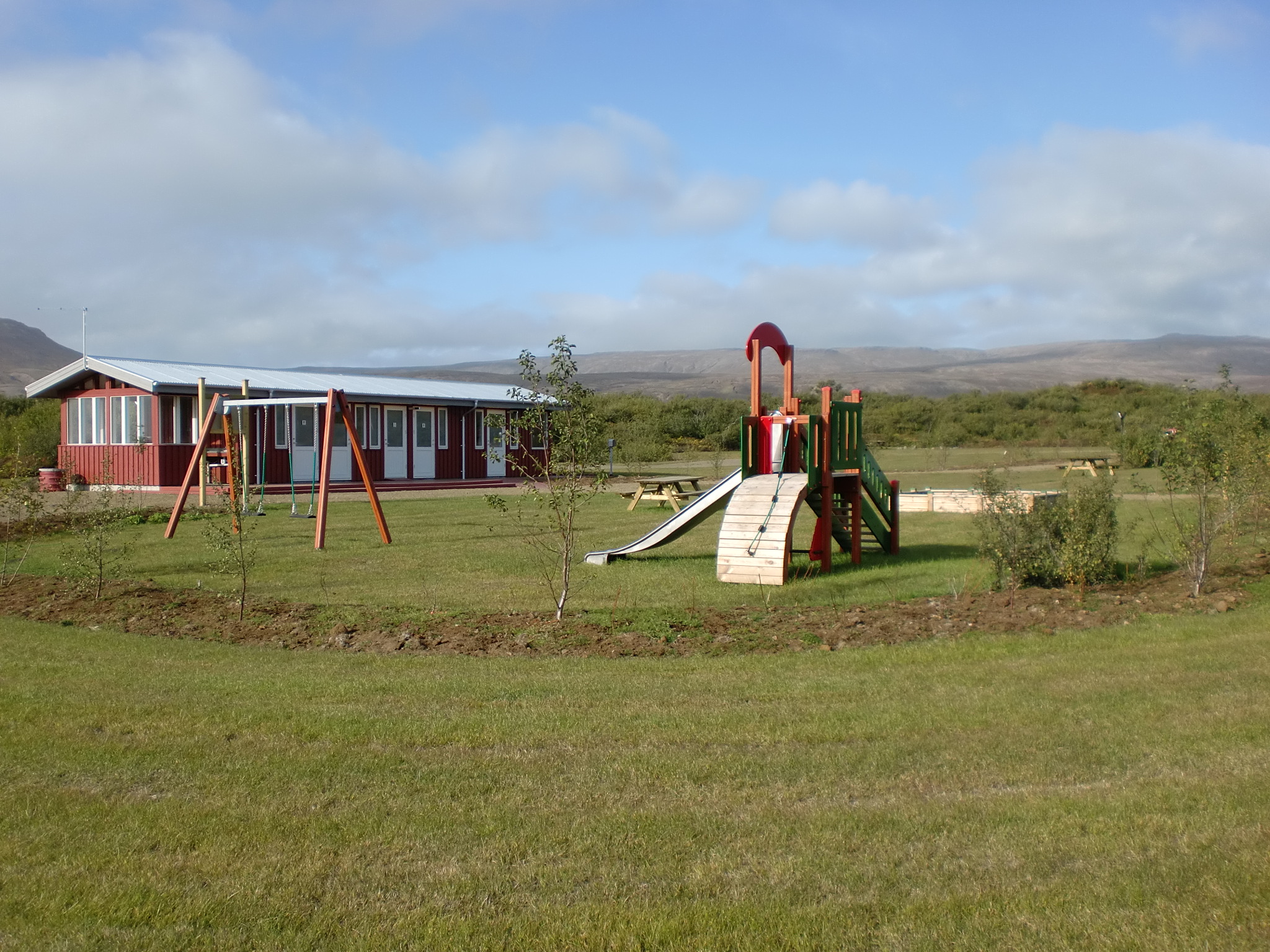Í framhaldinu voru gerðar miklar endurbætur á núverandi leiksvæði, sem er miðsvæðis á orlofshúsasvæðinu og er nefnt Klettaból eftir klettadranga sem afmarkar svæði að austanverðu. Þar er fyrir malarvöllur og mínigolf en sett voru upp ný leiktæki, hlaupaköttur og uppblásinn “ærslabelgur” Þá var lögð fimm brauta frisbígolfvöllur með tilheyrandi körfum og merkingum sem umlykur leiksvæðið. Lögð var áhersla á að halda sem mest í birkikjarrið sem afmarkar leiksvæðið og skilur á milli mismunandi leikrýma. Nýr stígur var lagður frá leiksvæðinu að tjald- og hjólhýsasvæðinu.