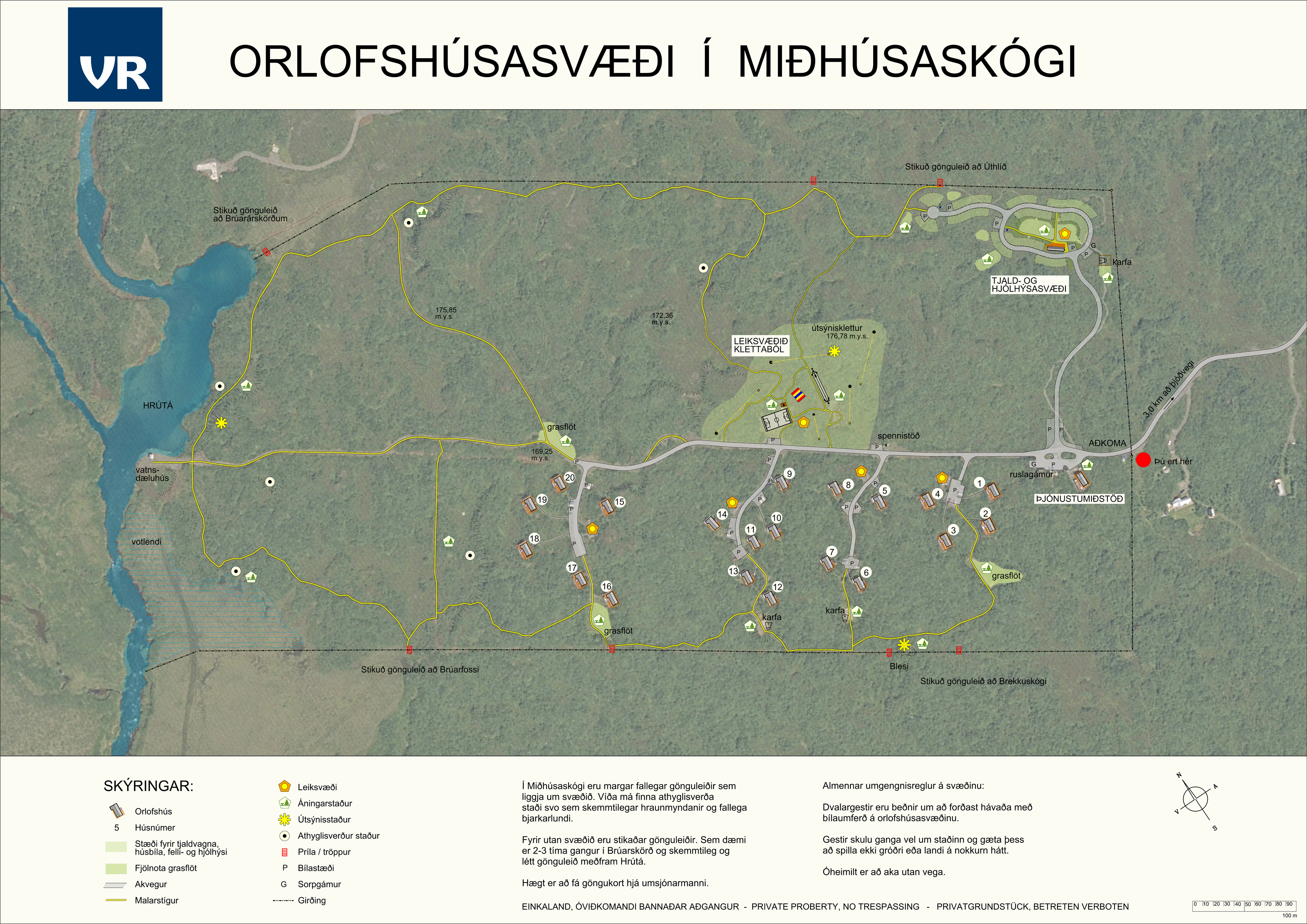 Árið 2010 vann Landmótun að breytingu á deiliskipulagi orlofshúsasvæðis VR í Miðhúsaskógi. Breytingin fólst í því að gera ráð fyrir tjald- og hjólhýsasvæði fyrir félagsmenn með það í huga að auka við fjölbreytileika í gistiaðstöðu á þessu vinsæla orlofshúsasvæði. Í framhaldi var svæðið hannað og verkið boðið út um síðustu áramót. Framkvæmdum lauk í júní s.l. en vegna mikilla þurrka í sumar var ákveðið að hlífa grasinu og fresta formlegri opnun til næsta vors. Leitast var við að nýta núverandi gróður á svæðinu til aðlögunar á jöðrum, stígum og vegum auk þess sem hluti af núverandi gróðri er óhreyfður. Nýr trjágróður til afmörkunar á rýmum var að uppstöðu íslenskar tegundir s.s. birki, víðir og reyniviður.